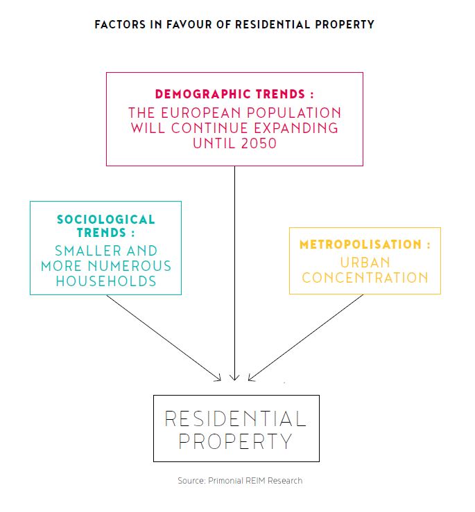 Nous pensons que les facteurs démographiques, sociologiques, et la poursuite du phénomène de métropolisation sont autant d’éléments déterminants pour l’investissement en immobilier résidentiel.